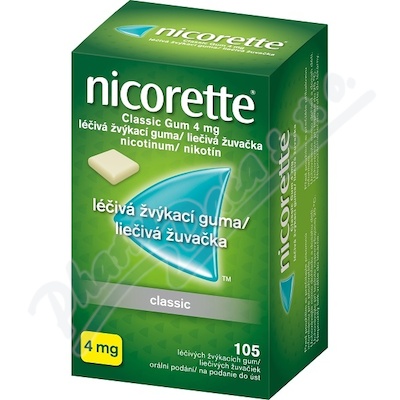 Nicorette Classic Gum 4 mg s jemnou neutrální příchutí ti pomůže při odvykání kouření. Díky rychlému nástupu účinku zmírňuje chuť na cigaretu a abstinenční příznaky. Balení obsahuje 105 kusů. Čtěte pozorně příbalový leták.