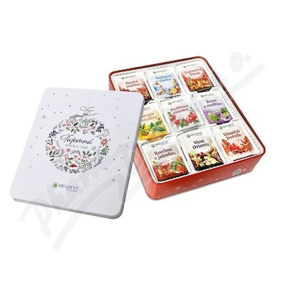 Tajemná kolekce čajů obsahuje 9 čajových směsí: Horká malina, Andělské zvonění, Tajemství Vánoc, Energie a vitalita, Sněhová vločka, Relax a meditace, Vůně orientu, Rooibos s jahodou, Vánoční hvězda.