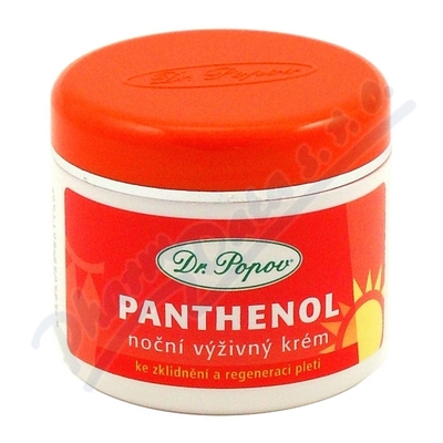 Panthenol noční výživný krém - ke zklidnění a regeneraci pleti. Obsažený D-Panthenol a vitamín E má vynikající zklidňující, regenerační a výživný účinek na suchou, citlivou, normální a zralou pleť. Krém je vhodný po nadměrném slunění. 50 ml.